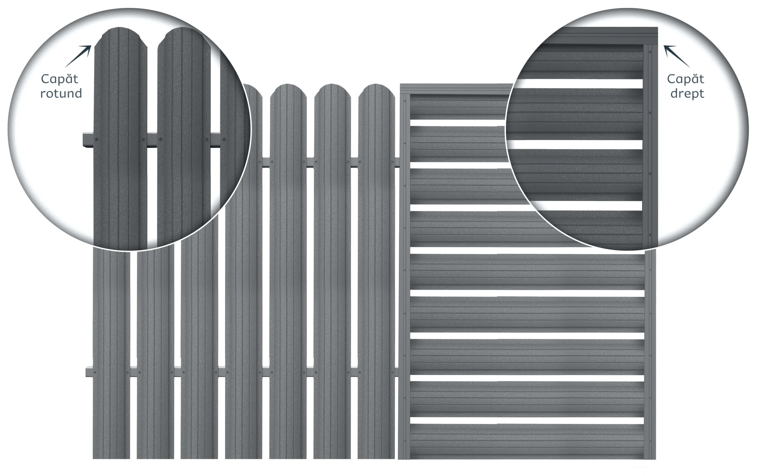 Avem 3 colecții de garduri metalice: garduri orizontale tip jaluzea, garduri orizontale tip casetă și garduri verticale tip șipcă.