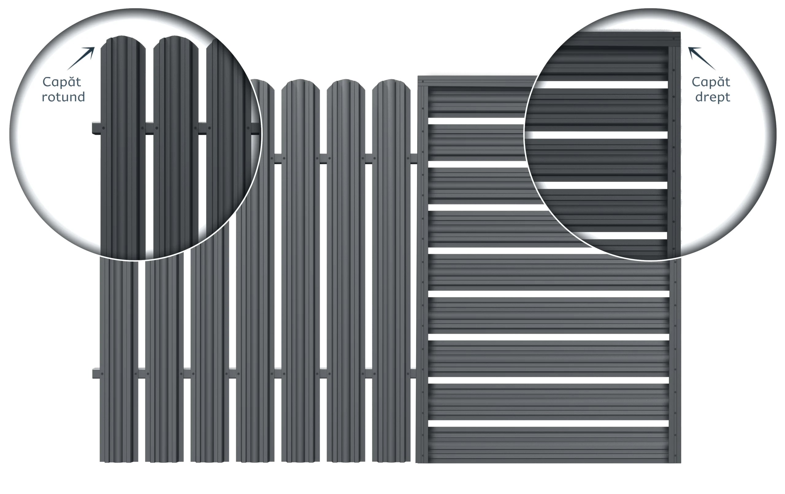 Avem 3 colecții de garduri metalice: garduri orizontale tip jaluzea, garduri orizontale tip casetă și garduri verticale tip șipcă.
