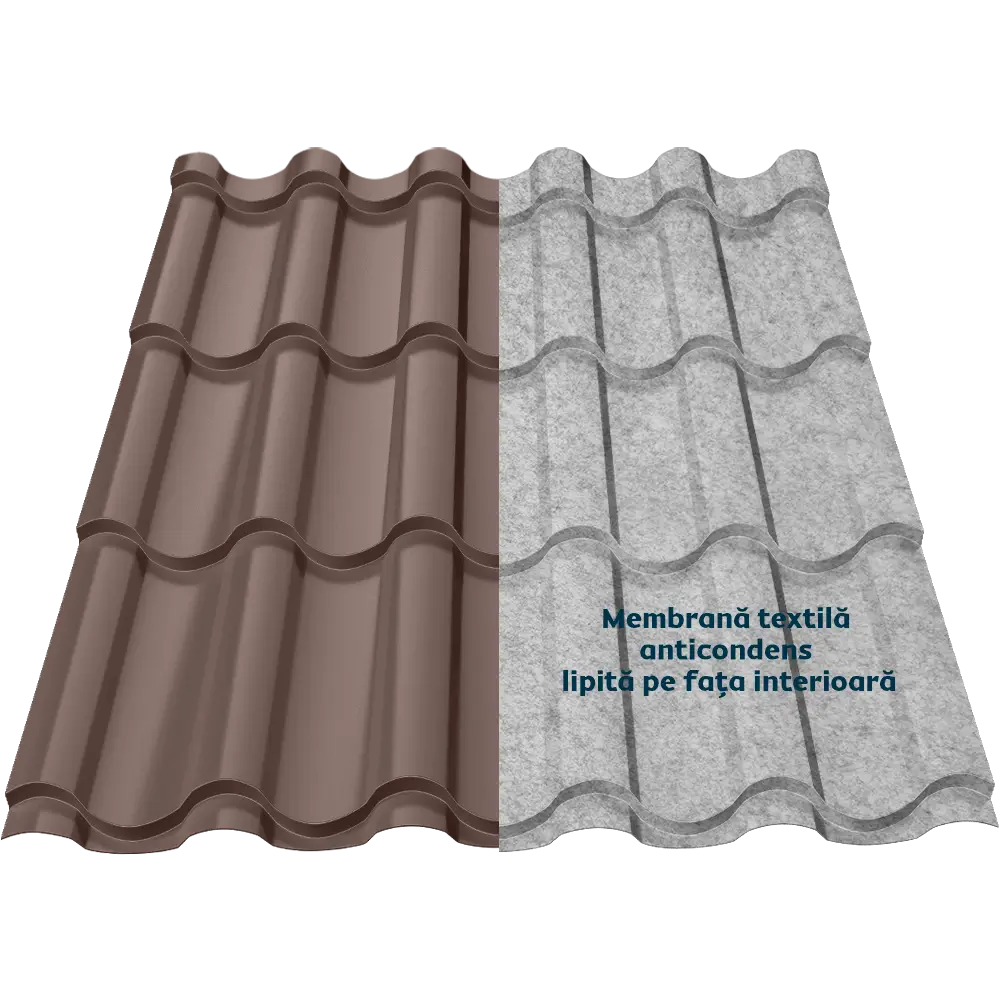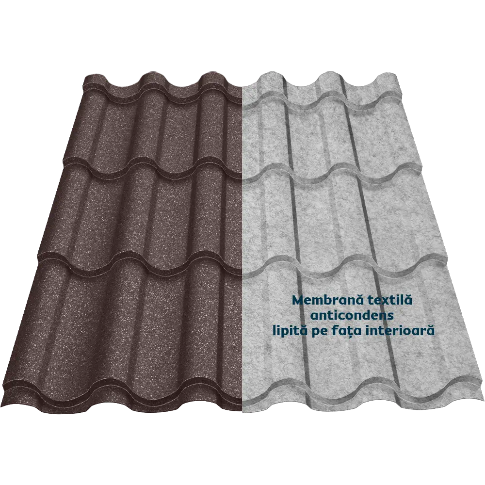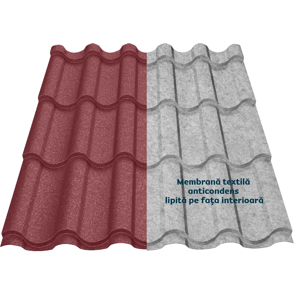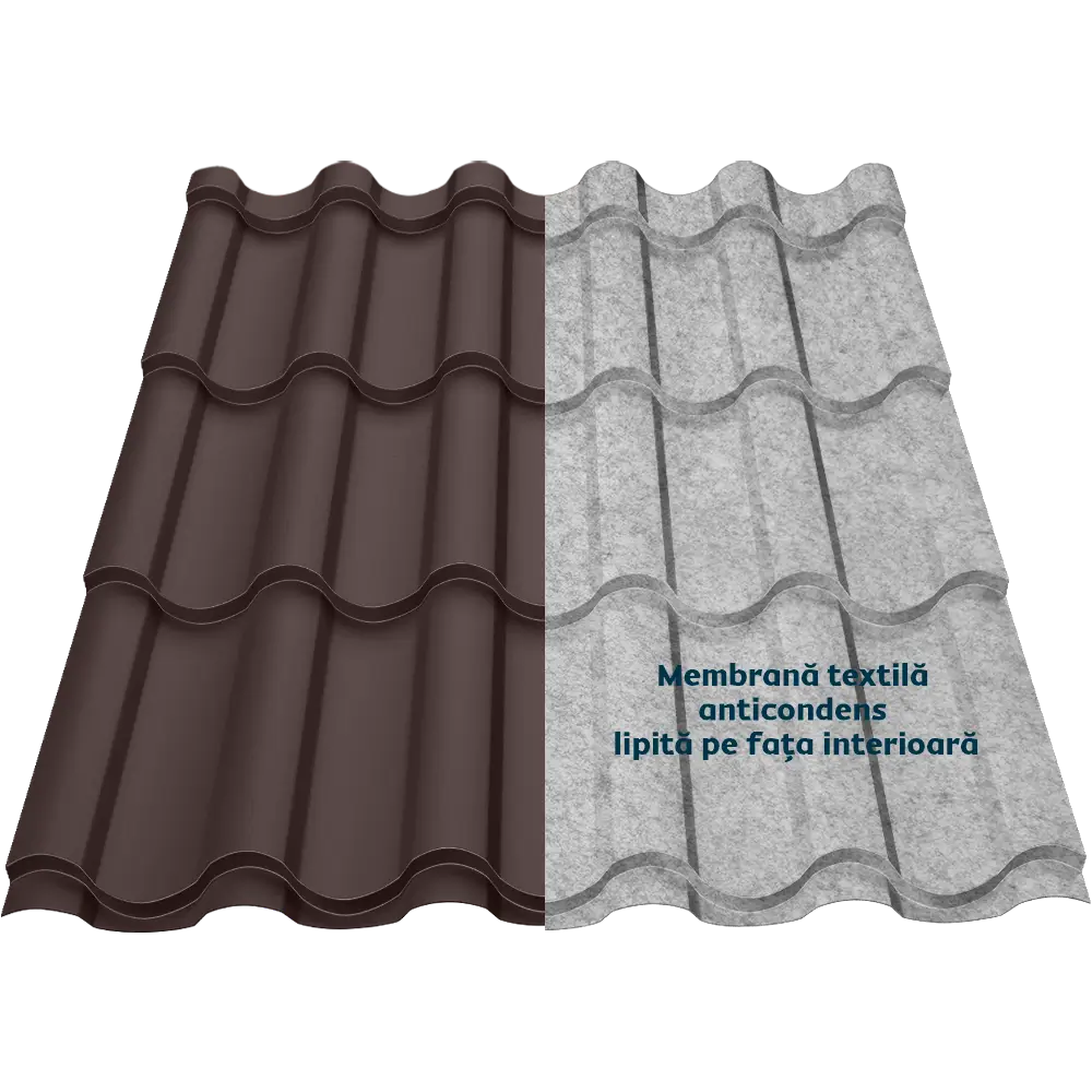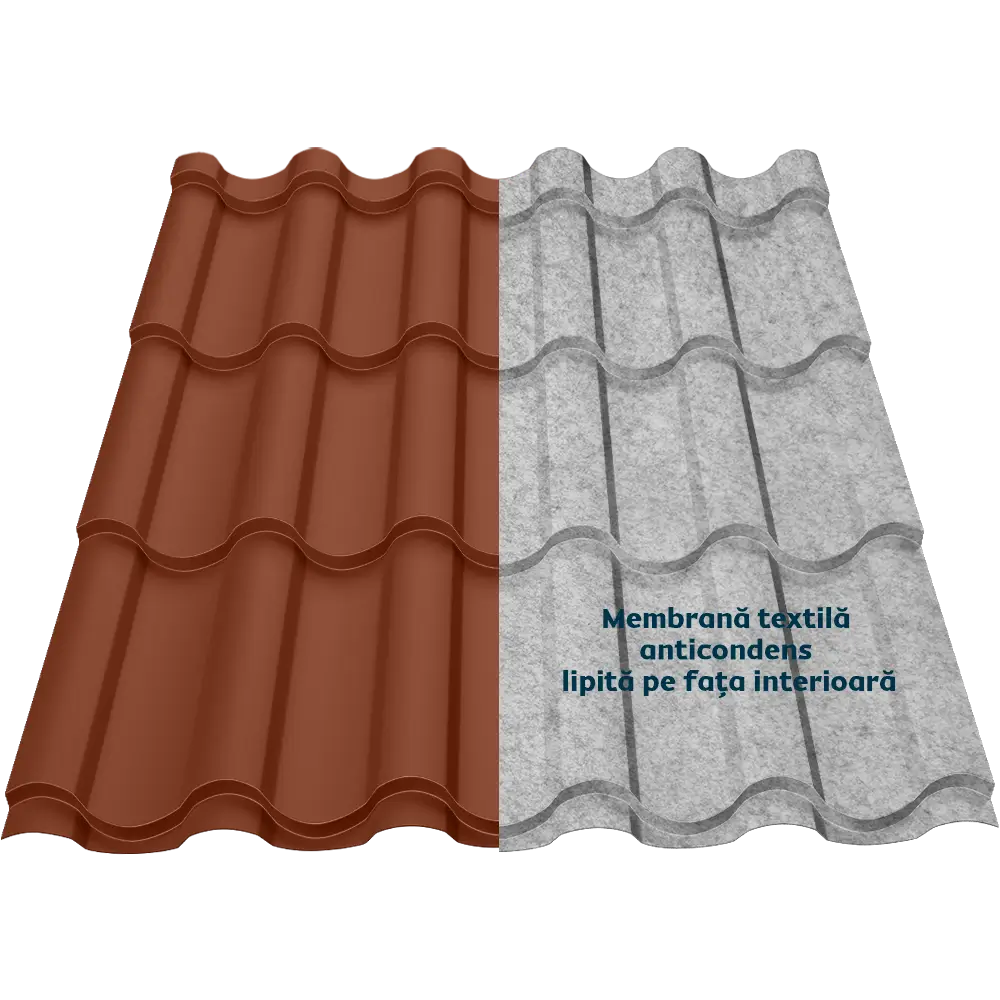 Țigla metalică Regal Smart îmbină eleganța stilului mediteranean și tehnologia modernă a membranei textile anticondens, oferind protecție și confort. Membrana reduce transferul termic, atenuează zgomotul ploii și oferă protecție împotriva bacteriilor și mucegaiului.